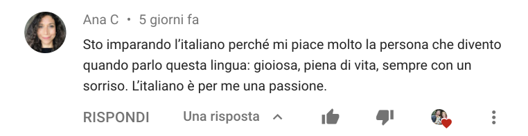 Seguo una comunità in continua crescita dove aiuto le persone di tutto il mondo a raggiungere la fluidità in italiano.