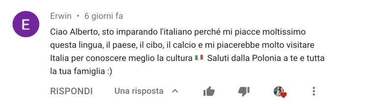 "Mi piace tantissimo il corso e l'entusiasmo di Alberto."(Olivia, Amburgo - GERMANIA 🇩🇪)