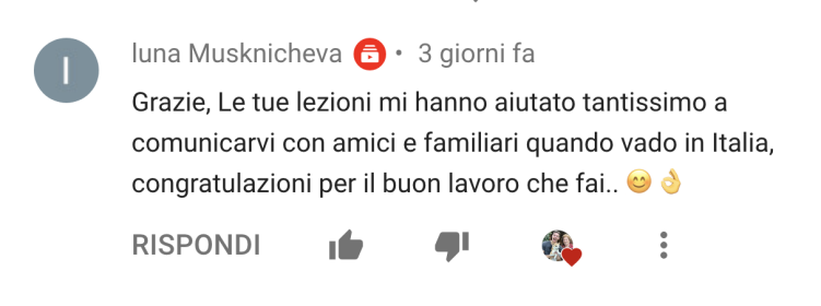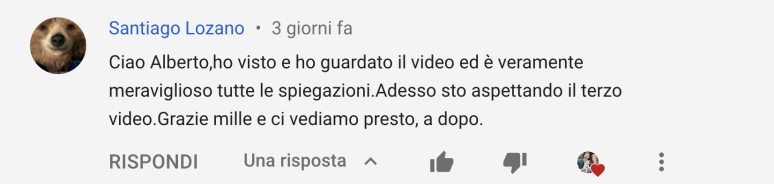 "Ho visto il corso di pronuncia e mi piace tutto, grazie mille Alberto"(Yolanda, Siviglia - SPAGNA 🇪🇸)